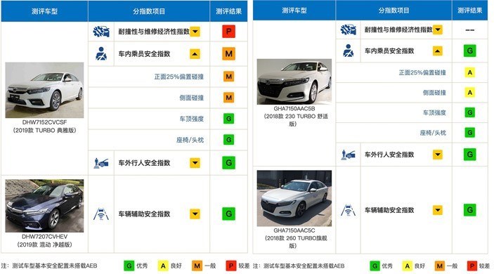 其中INSPIRE耐撞性与维修经济性指数测试来看,中保研给出的是P(较差),主要在于其车辆维修经济性得分较低,其中正面碰撞得分仅为9分(满分24分),而追尾碰撞得分为0分(满分24分);车头耐撞性要好于尾部,分别为5.5分和3分(满分6分)。这也侧面反映出该车型维修比较高。由于广汽雅阁是2018年测试的,所以未有这项测试结果,猜测两者在维修费用上没有太大差别。